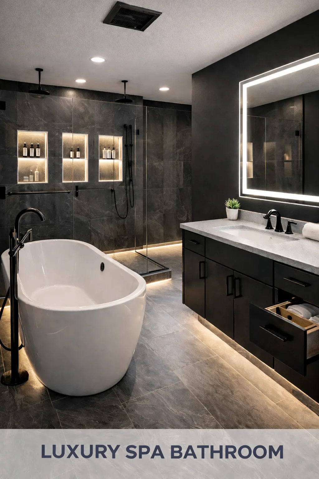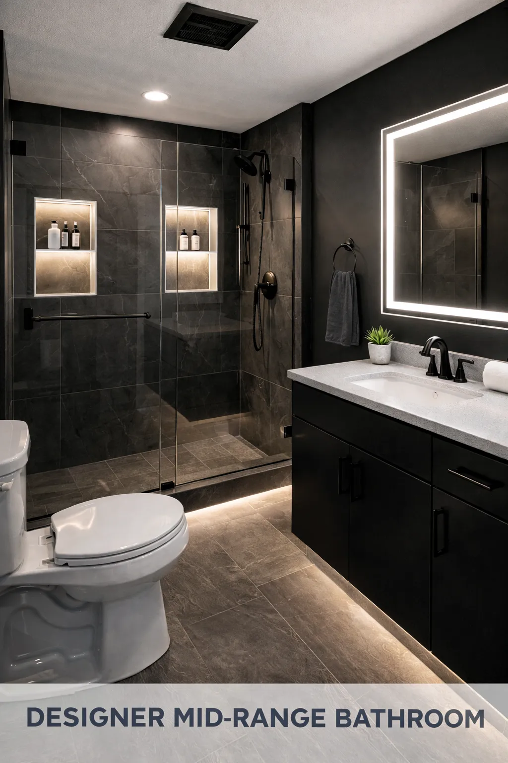 Details matter in a bathroom. Proper waterproofing, clean tile lines, balanced lighting, and quality finishes make the difference between “just remodeled” and truly well built.